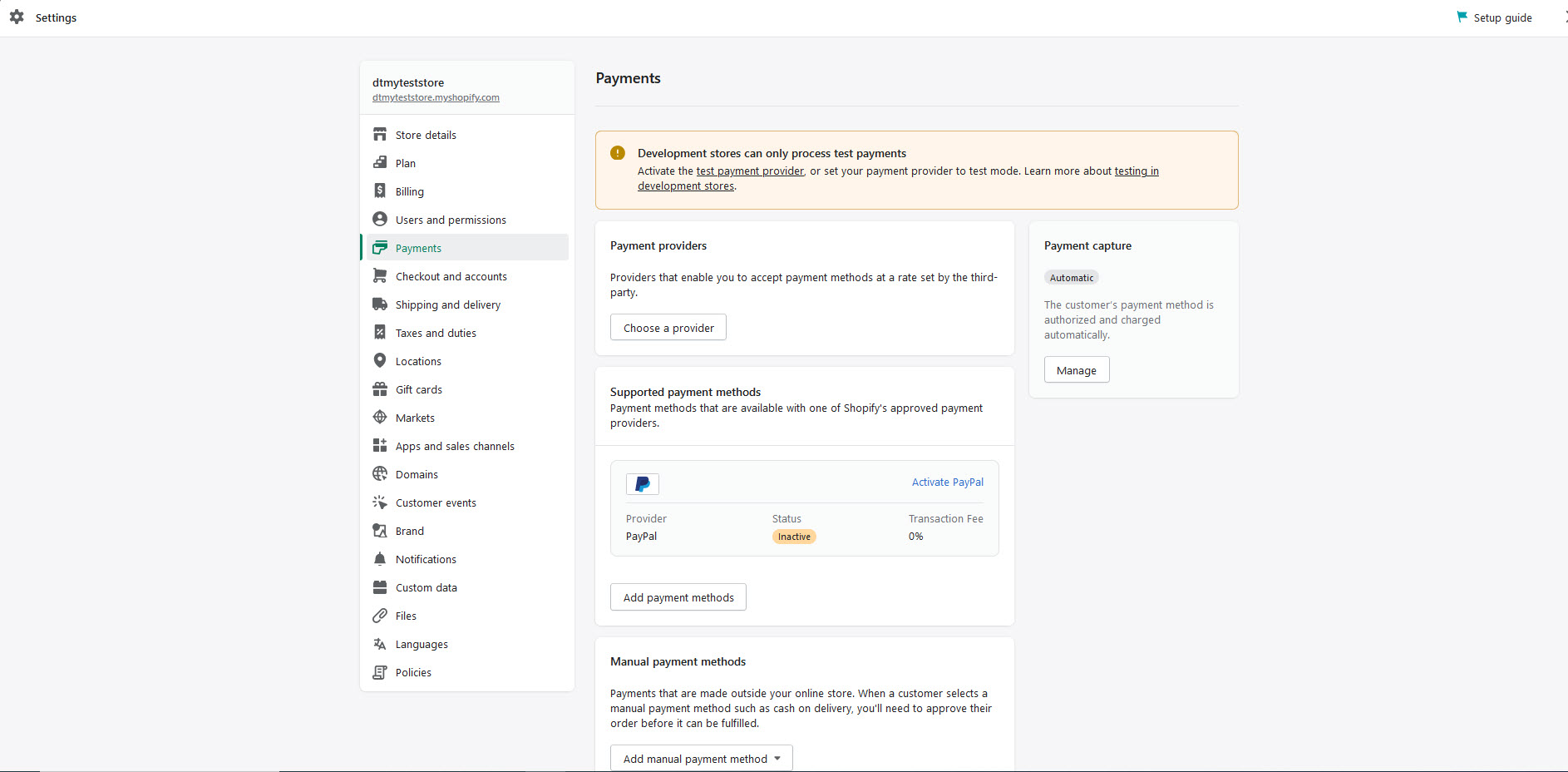 Step 1 :In the Shopify Payments section, click Manage.
