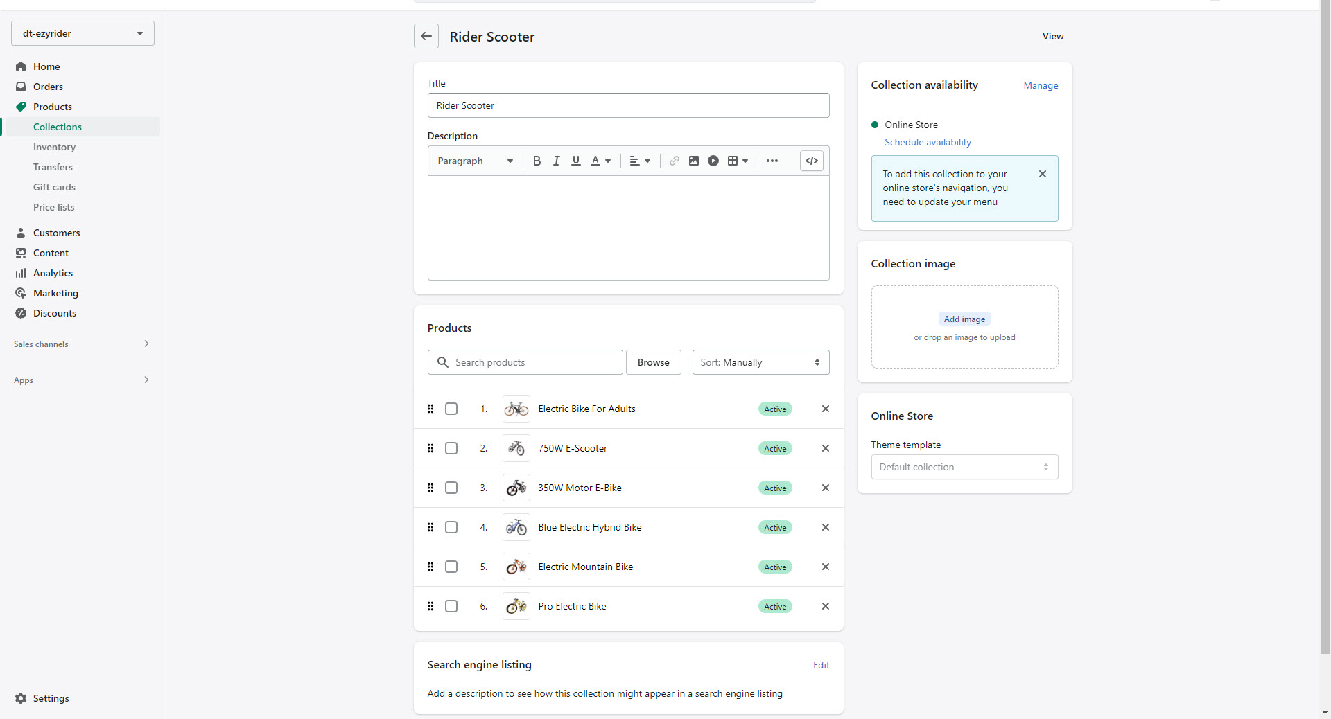 Step 5 : Enable collection discounts. This can be done in your Shopify admin under Discounts (under Sales channels).